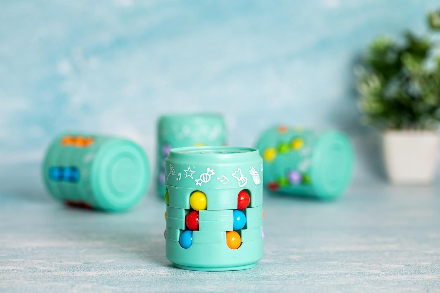 The Magic Cube and Fidget Spinner Toy is a multifunctional, colorful, and engaging puzzle toy designed to stimulate children's thinking while also offering the calming benefits of a fidget spinner. It is shaped like a cylinder and features multiple rows of movable beads, which children can manipulate to solve puzzles, match colors, or simply enjoy tactile stimulation. Ideal for kids and even adults who enjoy fidgeting to reduce stress or improve focus.